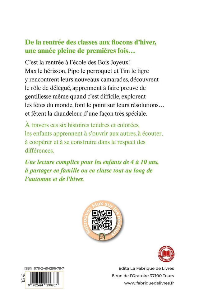 Max le hérisson, Pipo le perroquet et Tim le tigre y rencontrent leurs nouveaux camarades, découvrent le rôle de délégué, apprennent à faire preuve de gentillesse même quand c’est difficile, explorent les fêtes du monde, font le point sur leurs résolutions… et fêtent la chandeleur d’une façon très spéciale.